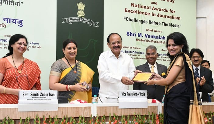 On this occasion, Mr Naidu presented Raja Ram Mohan Roy Award to veteran journalists Sam Rajappa and Sarat Mishra for their outstanding contribution towards journalism.