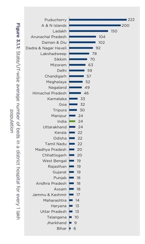 नीति आयोग ने बिहार में स्वास्थ्य व्यवस्था पर खोली डबल इंजन सरकार की पोल…. राज्य में 1 लाख की आबादी पर केवल 6 बेड उपलब्ध, देश के 36 राज्यों और केंद्र शासित प्रदेशों की सूची में अंतिम पायदान पर… (रिपोर्ट को स्वास्थ्य एवं परिवार कल्याण मंत्रालय और विश्व स्वास्थ्य संगठन के आपसी सहयोग से तैयार किया गया है)