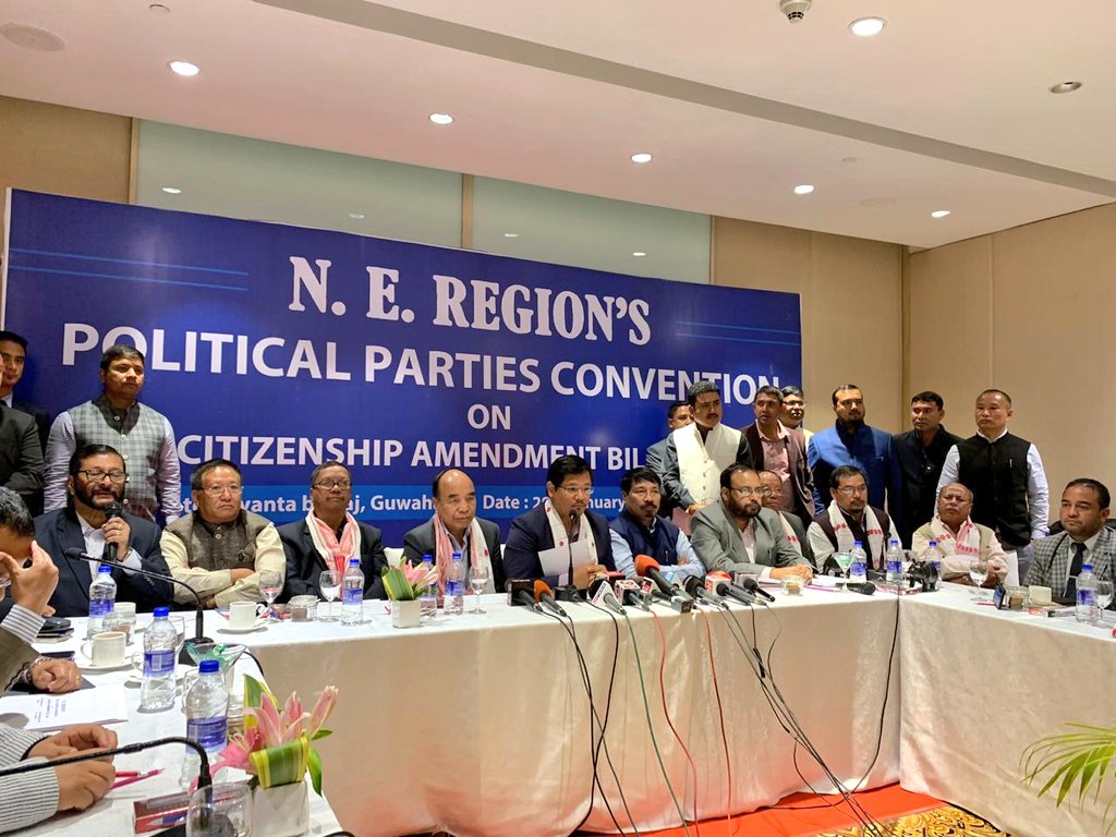 Different political parties from #NorthEast came together today to unanimously decide to oppose the Citizenship Amendment Bill, 2016. The parties have jointly decided to express the sentiments of the people before the Hon'ble President and Prime Minister of India. pic.twitter.com/OniMrQsSHB