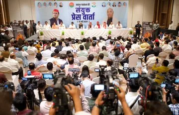 In Uttar Pradesh, INDA bloc parties held a joint press conference in the state capital Lucknow today. In this press conference, Congress President Mallikarjun Kharge and Samajwadi party Chief Akhilesh Yadav along with all the prominent leaders of both the parties were present.