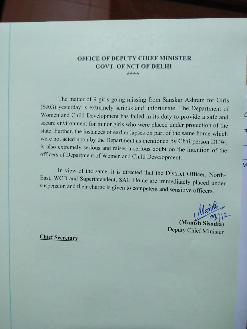 Terming the matter as “extremely serious”, Sisodia said that it raises a “serious doubt” on the intention of the officers of the Department of Women and Child Development.