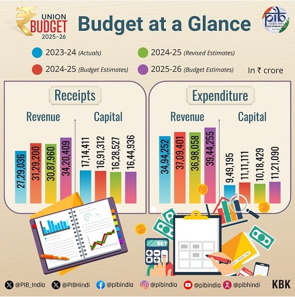 E: Expenditure: The budget for 2025-26 has set the total government expenditure at 50.65 lakh crore rupees, up from 47.16 lakh crore rupees in the revised estimates for 2024-25.