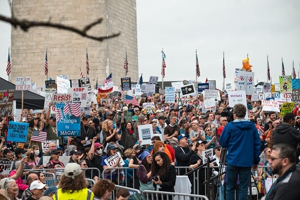 Washington Post reported that people gathered in response to what they see as the administration’s overreach on a variety of issues: NATO; schools; libraries; courts; veteran services; fair elections; and, organizers said, “our jobs, our wallets, our bodies.”