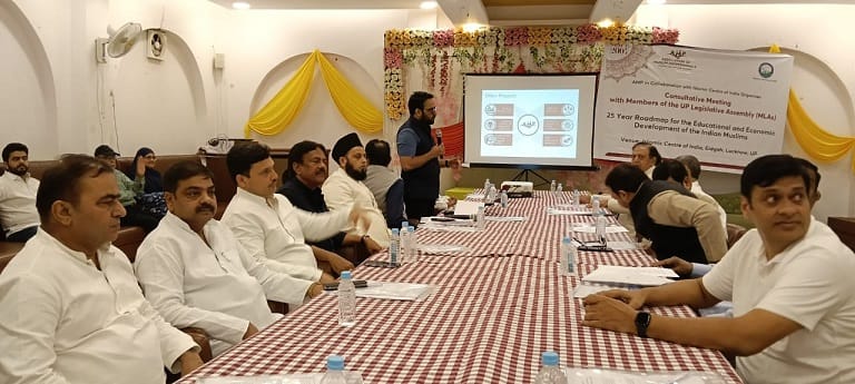 In a significant step toward long-term community upliftment, the Association of Muslim Professionals (AMP) organized a high-level consultative meeting with Members of the Legislative Assembly (MLAs) at the Islamic Centre of India, Lucknow, to deliberate on a 25-Year Roadmap focused on the educational and economic development of Indian Muslims.