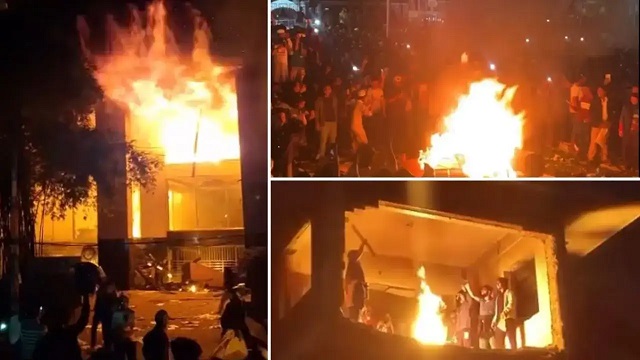 Protests soon spread to Shahbagh, Banglamotor and Karwan Bazar, where the situation took a violent turn. Unruly demonstrators attacked and set fire to the offices of the country’s two leading newspapers, Prothom Alo and The Daily Star. At The Daily Star office, flames forced 30–35 journalists and staff to flee to the rooftop before firefighters rescued them around 2 am. Army personnel were later deployed in front of the building. The fire service reached the Prothom Alo office shortly before 2.30 am and worked for hours to bring the blaze under control. Both newspapers have since suspended print and online operations.
