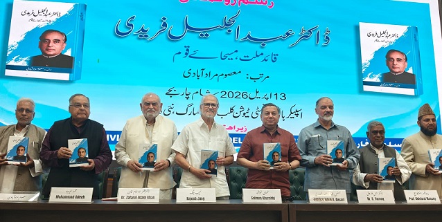 An impressive book launch ceremony was held at Constitution Club here to mark the release of a new book titled ”ڈاکٹر عبد الجلیل فریدی: قائدِ ملت، مسیحائے قوم“ “Dr. Abdul Jalil Faridi: Leader of the Community, Healer of the Nation,” compiled by senior journalist and author Masoom Moradabadi. The event was organized in collaboration with the Indian Muslims for Civil Rights.