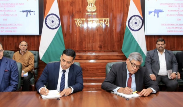 The contract for over 4.25 lakh CQB Carbine along with accessories, worth Rs 2,770 crore, for the Indian Army and the Indian Navy were signed with Bharat Forge Ltd and PLR Systems Pvt Ltd. This achievement marks the culmination of an extraordinary, persistent effort to equip Indian soldiers with world-class lethality, replacing legacy systems with cutting-edge indigenous technology under the ‘Aatmanirbhar Bharat’ vision.