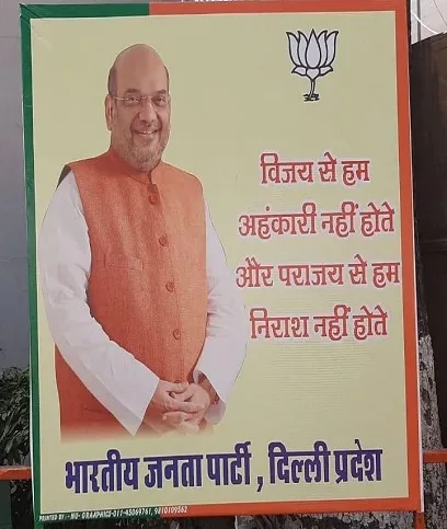 The party has put up posters at its Delhi party office saying that it is not discouraged by defeat. A poster in the Delhi BJP office has a photo of Union Home Minister Amit Shah and reads ‘Victory doesn’t makes us arrogant, defeat doesn’t demoralise us’.