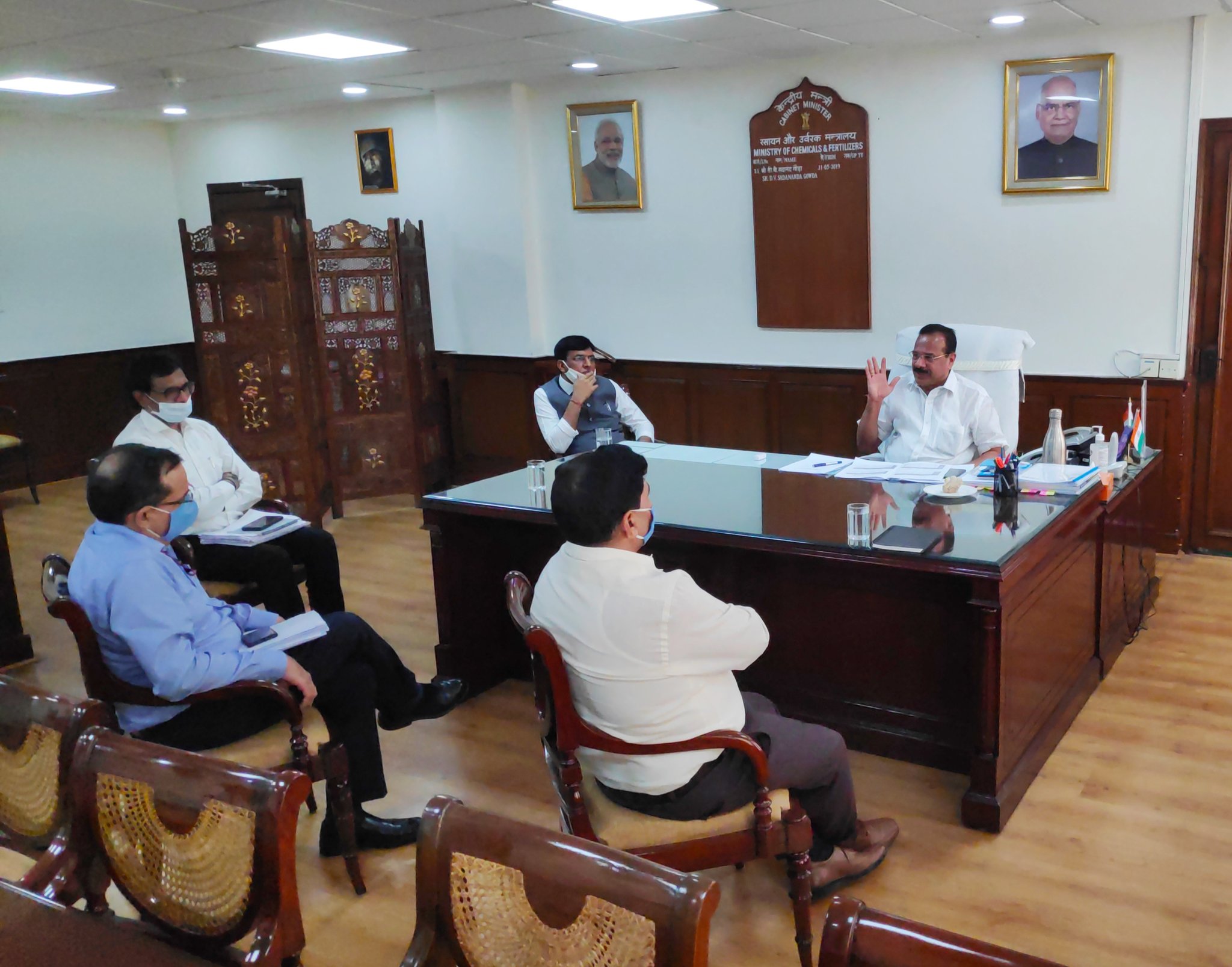 UNION Minister for Chemicals and Fertilisers D V Sadananda Gowda on Tuesday held a meeting with senior officers of Department of Pharmaceuticals to review various aspects of proposed development of three Bulk Drug Parks and four Medical Device Parks across the country.