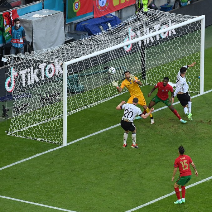 In Euro Cup Football, Germany thrashed Portugal 4-2 in the Group F encounter as Kai Havertz and Robin Gosens scored goals at the Allianz Arena in Munich, Germany last night. In Group F, Germany is now at the second spot with three points from two games while Portugal is at the third spot with three points from as many games.