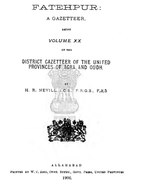 During British rule, detailed district records were compiled in gazetteers. One such gazetteer from 1908 titled Imperial Gazetteer of India – United Provinces of Agra and Oudh, Vol. II mentions on page 31: