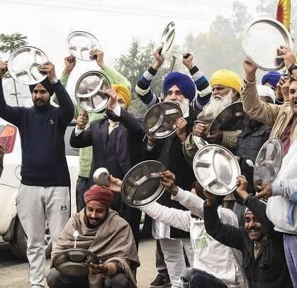 Intensifying their protest against the controversial farm laws, the farmers at the Singhu and Ghazipur borders today bang Thalis (utensils) during Prime Minister Narendra Modi’s monthly ‘Mann Ki Baat’ radio address.