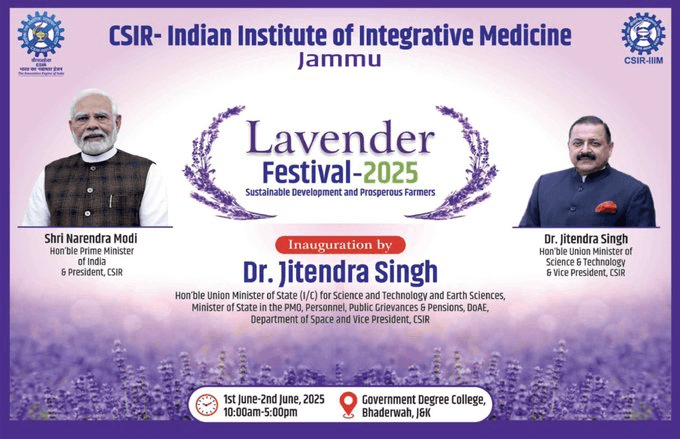 Organised by the CSIR-Indian Institute of Integrative Medicine (IIIM), Jammu, the festival will also feature an Agri Startup Expo highlighting innovations in lavender-based products and agricultural technologies.