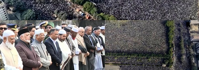Earlier in the day, millions of mourners joined the funeral (Namaz-e-Janazah) of Khaleda Zia, held at Manik Mia Avenue adjacent to the National Parliament at 3 pm. The funeral prayers were conducted by Baitul Mukarram National Mosque khatib Mufti Mohammad Abdul Malek, while BNP standing committee member Nazrul Islam Khan read out a brief biography of the former prime minister.