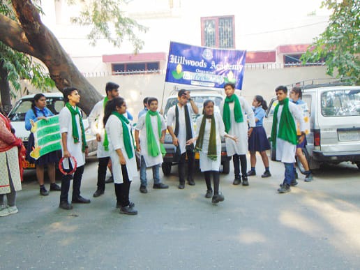 An Anti-Cracker rally was organized by Hillwoods Academy, Preet Vihar on 24 October 2019 to sensitize the residents, commuters and children not to burn crackers and have a safe and pollution-free Diwali. More than 100 students with their teachers took part in the rally.