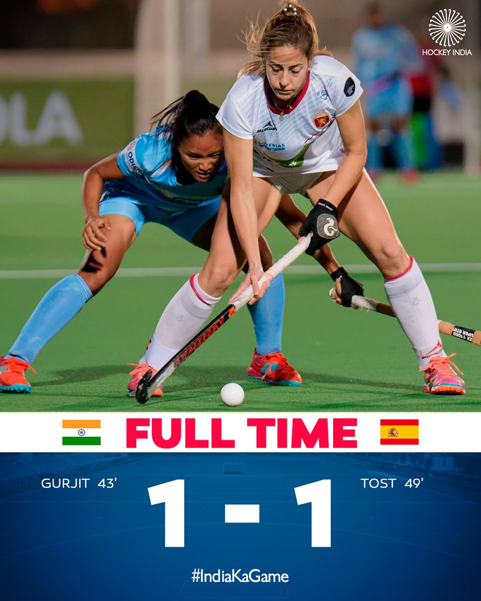 In the second international hockey match, Indian women earned a hard-fought 1-1 draw against host Spain at Muricia last evening. Indian team put up a spirited performance in a high-voltage second encounter after losing 2-3 to Spain in their opening match on Saturday. India will play their third match of the tour tomorrow.