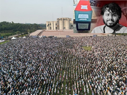 Hadi’s namaz-e-janaza was held after Zuhr prayers at Manik Mia Avenue, adjacent to the National Parliament complex, under heavy security. Tens of thousands of people from across the country arrived in organised processions, many chanting slogans demanding justice for Hadi and vowing to continue his political struggle.