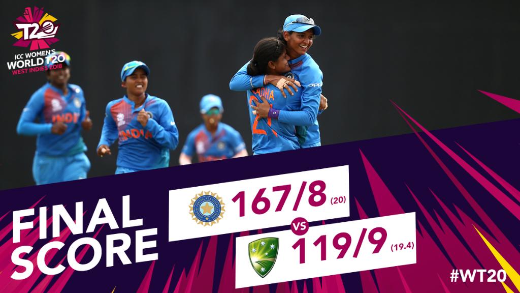 India got a batting lift from Smriti Mandhana and Harmanpreet Kaur, and they followed it up with a tigerish defence of their 167/8 to pull off a 48-run win against Australia in a top-of-the-table Group B match of the ICC Women’s World T20 2018.