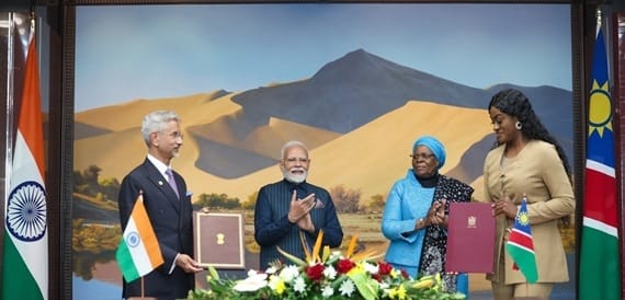 India and Namibia today signed MoUs in the field of Health and Medicine, and on the setting up of Entrepreneurship Development Center in Namibia and on Cooperation. An announcement on launching of Digital Payments system in Namibia later this year also took place. Letters of acceptance for Namibia’s joining of CDRI and Global Biofuels Alliance have also been presented. The MoUs have been signed after the delegation-level talks between Prime Minister Narendra Modi and Namibian President Netumbo Nandi-Ndaitwah at the State House in the Namibian capital, Windhoek.