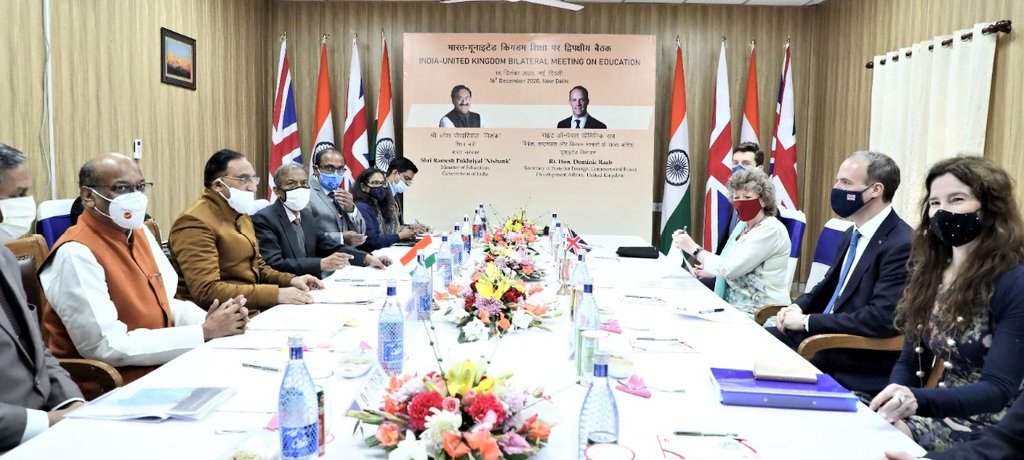 India and the United Kingdom have decided to further strengthen their educational collaboration. In a bilateral meeting between Education Minister Ramesh Pokhriyal ‘Nishank’ and United Kingdom Foreign Secretary, Dominic Raab in New Delhi, the two countries agreed to deepen their engagement in the field of education and research, and work collaboratively on mutual recognition of academic qualifications over the next year.