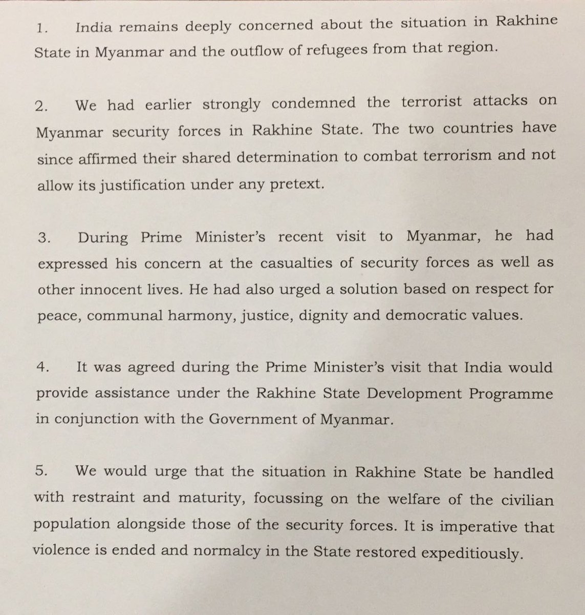 In a statement, the External Affairs Ministry said that it is imperative that violence is ended and normalcy in the state restored expeditiously. It said, India remains deeply concerned about the situation in Rakhine State and the outflow of refugees from that region.