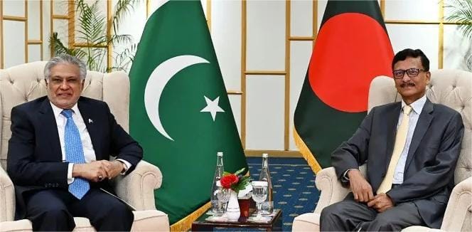 इसी दौरान पाकिस्तान के उप प्रधानमंत्री और विदेश मंत्री इशाक डार भी ढाका पहुंचे। यह 13 वर्षों में पहला उच्च-स्तरीय पाकिस्तानी दौरा था। इस दौरान डार ने सत्तारूढ़ दलों के अलावा विपक्षी दलों—बीएनपी और जमात-ए-इस्लामी—के नेताओं से भी मुलाकात की, जिसने भारत की चिंता और बढ़ा दी। ढाका और इस्लामाबाद के बीच बिना वीज़ा यात्रा समझौते और शिक्षा, मीडिया तथा कूटनीतिक प्रशिक्षण जैसे क्षेत्रों में सहयोग बढ़ाने पर सहमति बनी।