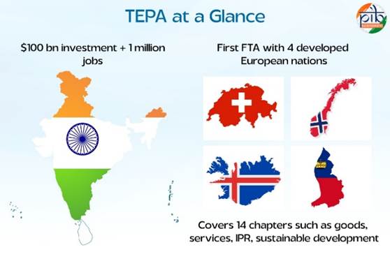 The India-European Free Trade Association (EFTA) Trade and Economic Partnership Agreement which came into effect from first of this month, is a defining moment in country’s external trade policy. This is country’s first Free Trade Agreement with four developed European nations namely Switzerland, Norway,