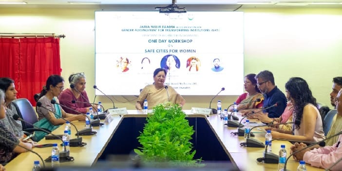 The Department of Architecture, Jamia Millia Islamia (JMI) conducted a one-day workshop on ‘Safe Cities for Women’ in collaboration with Gender Advancement for Transitioning Institutions (GATI) on 01st August 2023. The inaugural session of the workshop was chaired by JMI Vice Chancellor Prof. Najma Akhtar (Padma Shri). The workshop was aimed as a capacity building measure for the young graduates, post graduates and PhD scholars as they venture out in to their respective fields and begin careers.