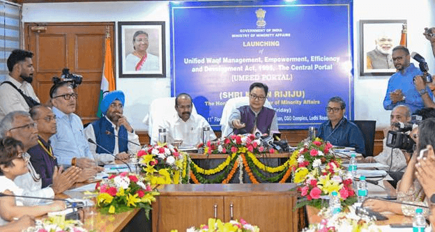 Union Minister for Minority Affairs and Parliamentary Affairs, Kiren Rijiju, today launched the UMEED Central Portal in New Delhi to streamline the management of Waqf properties across India. Minister of State for Minority Affairs George Kurian was also present at the launch.