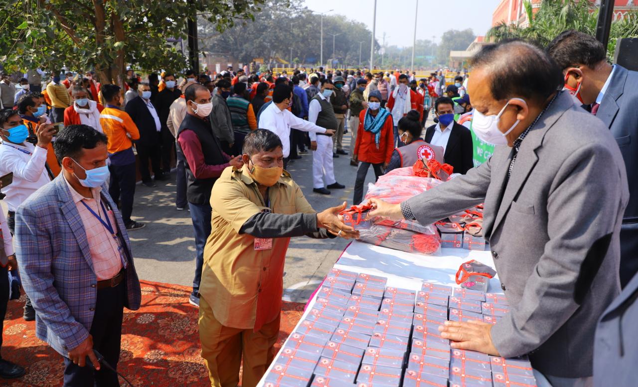 UNION Health Minister Dr Harsh Vardhan distributed masks and soaps at the Old Delhi Railway Station today. Emphasizing on the importance of wearing Mask and washing of hands, Dr Vardhan said the most important principle is to follow basic principles of hygiene and physical distancing. He said mask and sanitizer are the biggest weapon in fight against COVID.