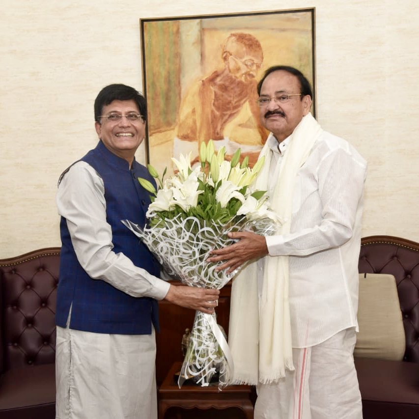 Today morning, the Minister of Railways and Commerce and Industry, Mr. Piyush Goyal called on the Vice President. During his interaction with Mr. Goyal, the Vice President advised him to speed up the progress of the ongoing projects expeditiously before rolling out new projects.