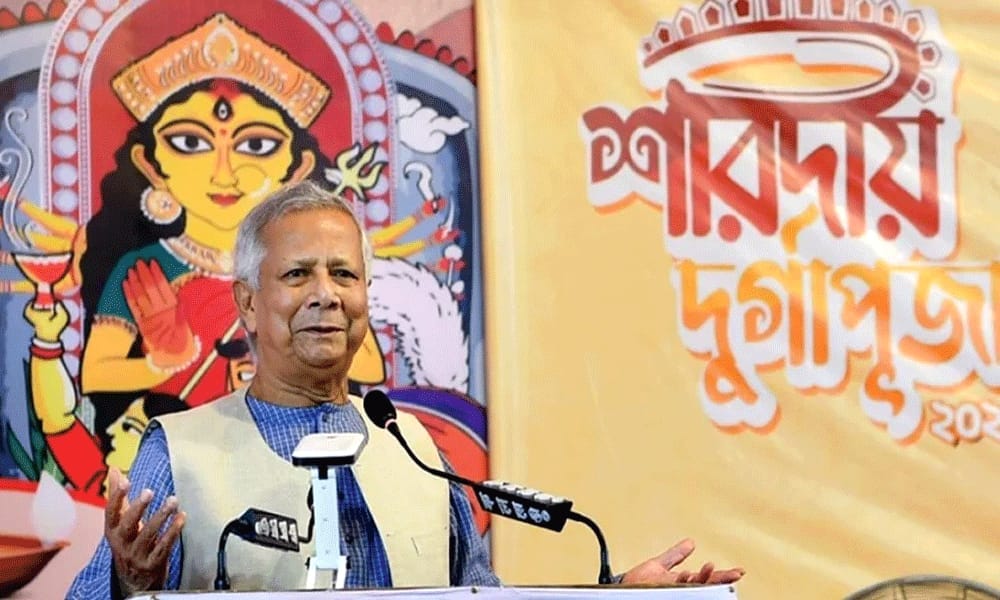 Bangladesh’s Chief Adviser Muhammad Yunus on Tuesday extended advance Durga Puja greetings, stressing that no government has the right to deny citizens their constitutional rights.