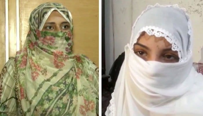 Pakistani women Tayyaba (left) and Rabia (right) make startling revelations pertaining to their marriage with their Chinese nationals — Geo News