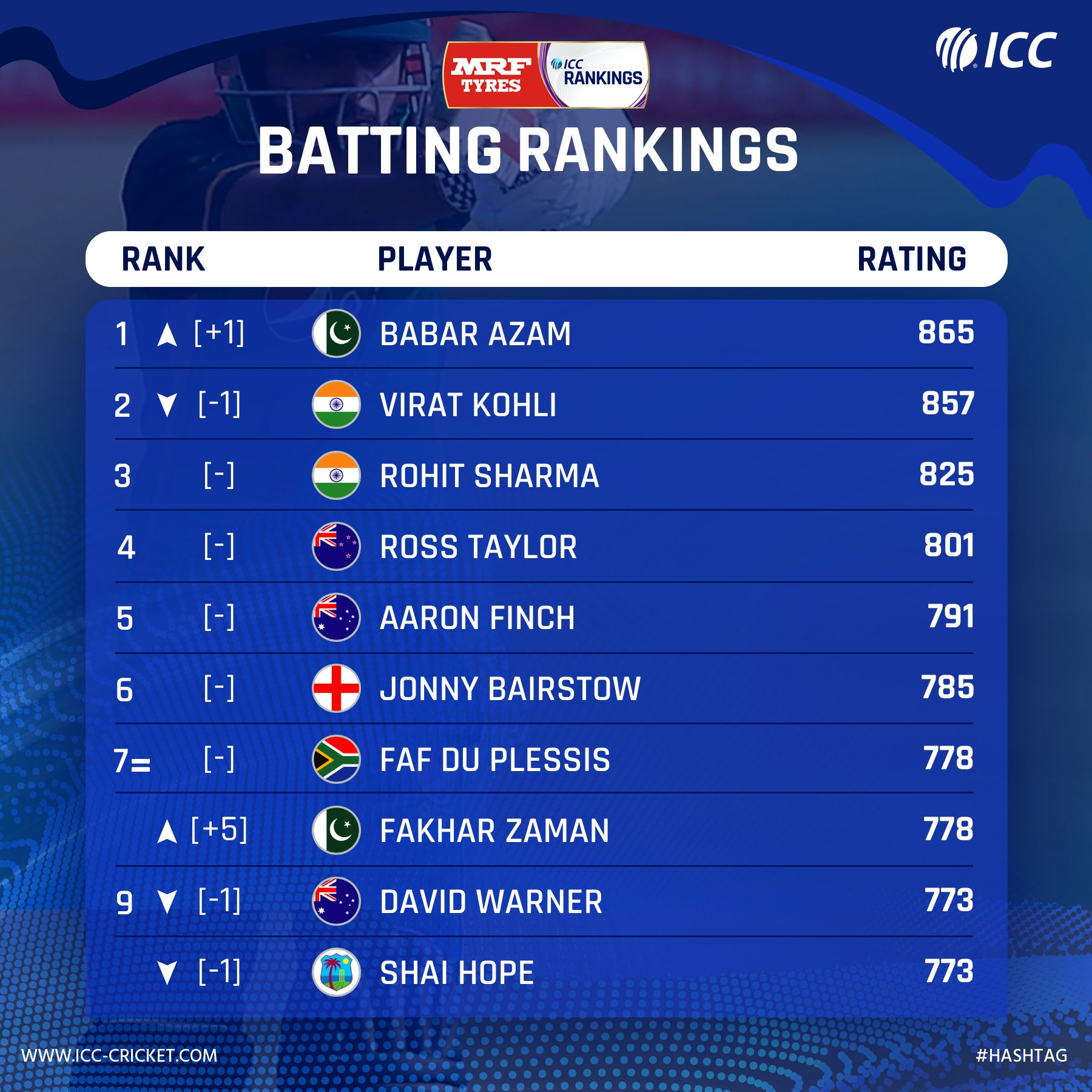 Rohit Sharma with 825 points is the only other Indian player who has featured in the latest top 10 batting chart.