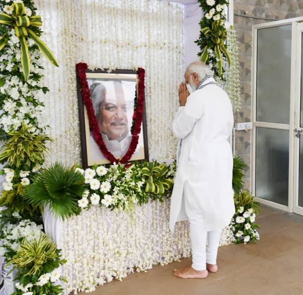 He visited Gandhinagar and paid homage to the former Chief Minister Keshubhai Patel who passed away yesterday. He met the family members of late Keshubhai and expressed his condolences.