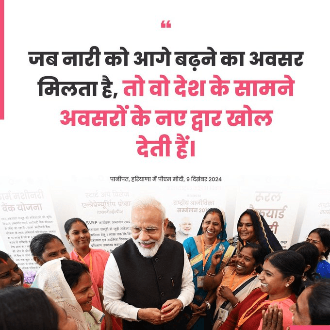 Concluding his address, Shri Modi assured the women of Haryana that the state would develop rapidly and the Governments at the Center and State would work three times faster in their third term. He expressed confidence that the role of women power in Haryana would continue to grow stronger.