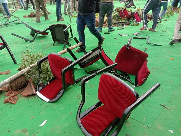 However, farmers reached the venue and disrupted the kisan mahapanchayat’ programme. They damaged the stage and broke chairs, tables and flower pots at the venue.