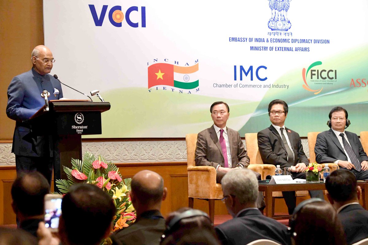 The President said the Vietnam-India business relationship presents prospects for engagement in financial services, IT and the digital economy, hydrocarbons, defence, renewable energy, mining, healthcare, tourism and civil aviation, among other sectors.The President saidVietnam is a very important trading partner for India within ASEAN, and India is now among the 10 largest trading partners of Vietnam.