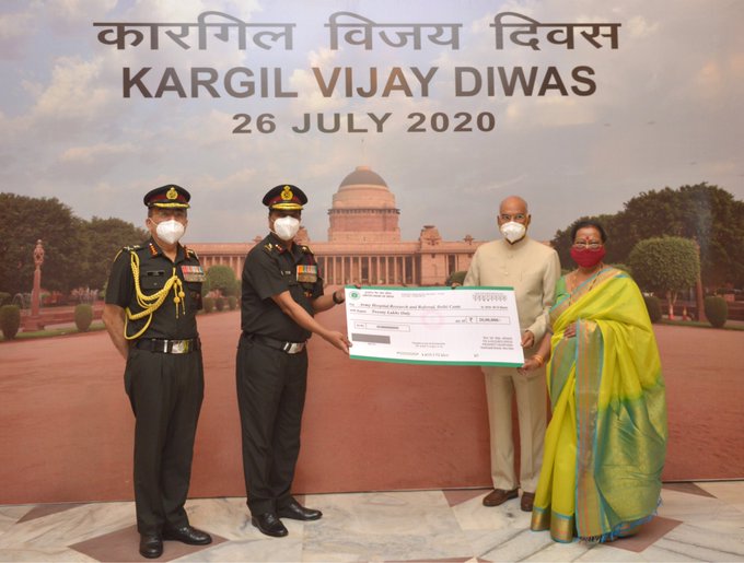 President Ram Nath Kovind today presented a cheque of 20 lakh rupees to the Army Hospital, Delhi to buy equipment that will help doctors and paramedics combat the Covid-19 effectively. The President’s contribution to the Army Hospital has been made possible due to an exercise to economise expenditure in the Rashtrapati Bhavan and thus make more resources available to contain Covid-19.