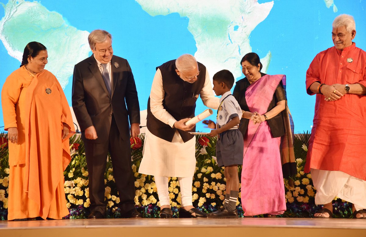 In his address, United Nations Secretary-General Antonio Guterres congratulated Mr Modi for giving priority to sanitation. He said Clean India will be a befitting tribute to Mahatma Gandhi. Mr Guterres said, to reach the Sustainable Development Goals, there is an urgent need to tackle the issue of sanitation as is being done in India. He said India is an example of how political will and commitment can help achieve safe sanitation.