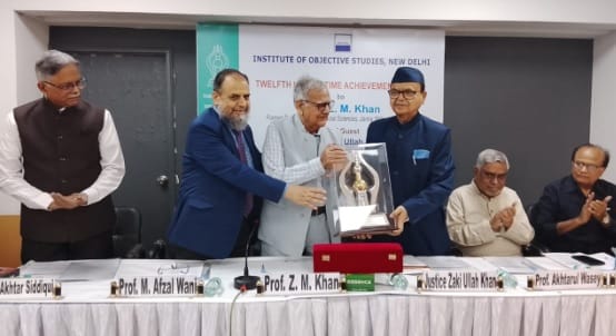 Renowned scholar, author, and former Dean of Social Sciences at Jamia Millia Islamia, Professor Z.M. Khan, has been conferred with the IOS Lifetime Achievement Award by the Institute of Objective Studies (IOS) in a grand ceremony held in New Delhi. The award included a citation, a memento, and a cash prize of ₹1 lakh.