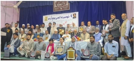 Other speakers, including Dr. Syed Farooq, Maulana Muhammad Rahmani, and Dr. Wasiul Haq Wasi (guest from Doha, Qatar), also addressed the gathering. Several personalities were honored with mementos, shawls, and certificates for their services to Urdu, while outstanding students of Classes 10 and 12 received encouragement awards.