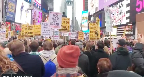 Hundreds of protesters chanting slogan “No war on Iran” rallied Saturday in Washington, New York and other U.S. cities after the assassination of a top Iranian military commander in a U.S. drone strike.