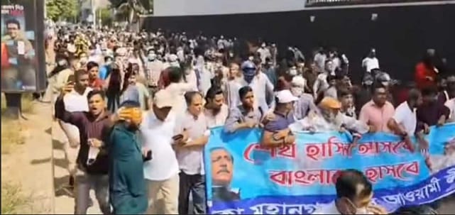 An eyewitness said, “The Awami League brought out a procession with nearly 2,000 people,” adding that slogans such as “Sheikh Hasina, Sheikh Hasina”, “If Sheikh Hasina returns, Bangladesh will smile” and “Remove Yunus, save the country” echoed through the streets.