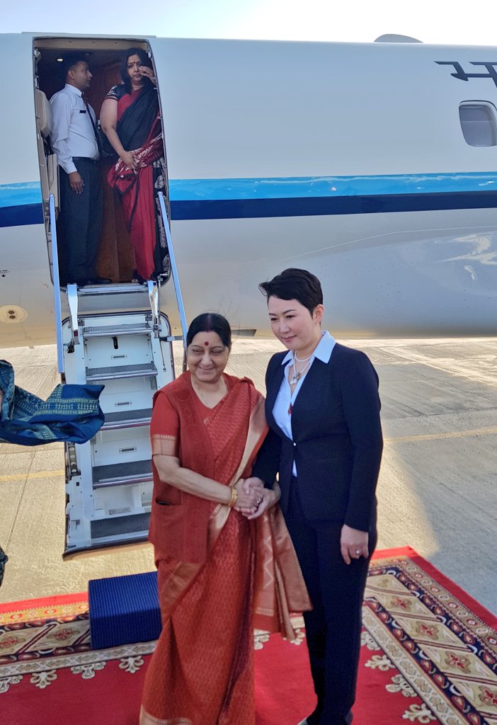 She was received by the Deputy Foreign Minister of Mongolia B Battsetseg. This is the first visit of an Indian External Affairs Minister to Mongolia in 42 years.
