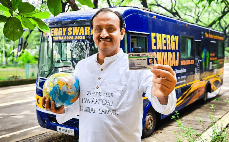 Professor Solanki’s journey began with the “Energy Swaraj Yatra” in 2020, a solar-powered bus expedition aimed at raising climate awareness. He has traveled over 68,000 km, giving more than 1,650 lectures and living on the bus for 11 years to demonstrate his commitment.