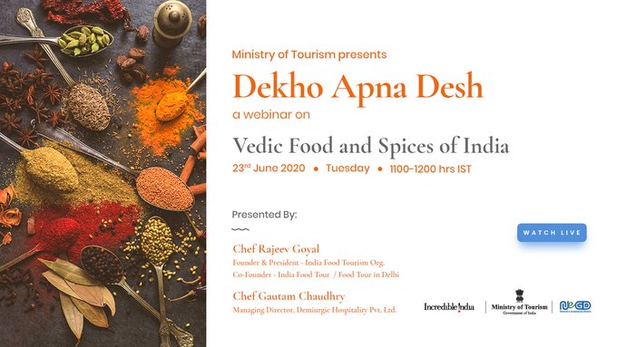 To showcase the benefits about our country’s ancient form of health science, Tourism Ministry conducted a webinar on ‘Vedic Food and Spices of India’ under Dekho Apna Desh webinar series.