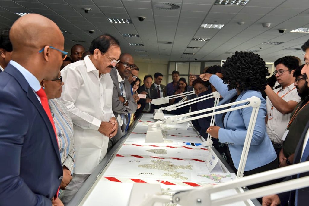 On the last day of his visit to Botswana, Vice President M Venkaiah Naidu visited the Diamond Trading Company’s sorting and trading centre, the largest of its kind in the world.