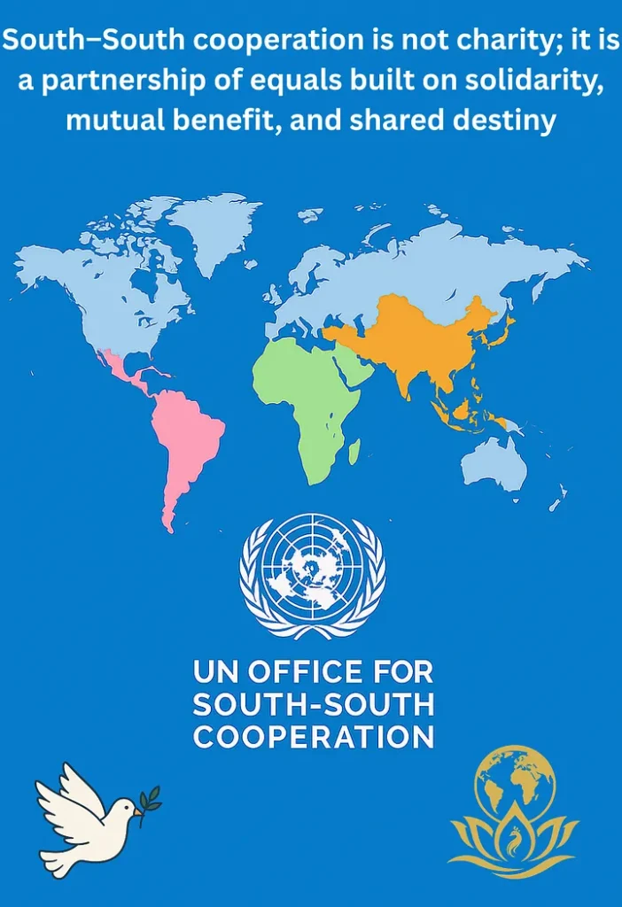 اقوامِ متحدہ نے اس رجحان کو باقاعدہ شکل دینے کے لیے“اقوامِ متحدہ کا دفتر برائے جنوب-جنوب تعاون”(UNOSSC) قائم کیا۔ یہ ادارہ ترقی پذیر ممالک کے درمیان پالیسی سازی، تکنیکی معاونت، اور ترقیاتی منصوبوں کی ہم آہنگی میں کلیدی کردار ادا کر رہا ہے۔UNOSSC کی ڈائریکٹر دیما خطیب کے مطابق:“جنوبی دنیا دنیا کی تقریباً 80 فیصد آبادی پر مشتمل ہے۔ ان کے پاس انسانی وسائل، زرخیز زمینیں، معدنیات، اور ٹیکنالوجی سیکھنے کی بے پناہ صلاحیت موجود ہے۔ مگر بدقسمتی سے ان وسائل کو منظم انداز میں استعمال نہیں کیا گیا۔ اب وقت ہے کہ یہ ممالک اپنی اجتماعی طاقت پہچانیں اور اپنے مستقبل کی سمت خود طے کریں۔”