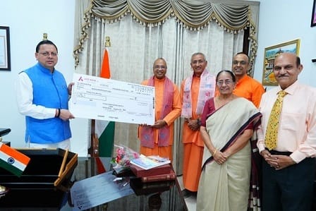 देहरादून : योगदा सत्संग सोसाइटी ऑफ़ इंडिया के महासचिव, स्वामी ईश्वरानंद गिरि ने उत्तराखंड पीडितों के लिए 25 मुख्यमंत्री श्री पुष्कर सिंह धामी से देहरादून भेंट की। इस अवसर पर स्वामी ईश्वरानंद ने मुख्यमंत्री को श्री श्री परमहंस योगानन्द जी की आध्यात्मिक धरोहर से संबंधित कुछ ग्रंथ भेंट करने के साथ मुख्यमंत्री राहत कोष के लिए 25 लाख रुपये का चेक भी सौंपा, जिससे उत्तराखण्ड में लगातार हो रही वर्षा के कारण आई बाढ़ की स्थिति में राहत कार्यों में सहायता मिल सके।